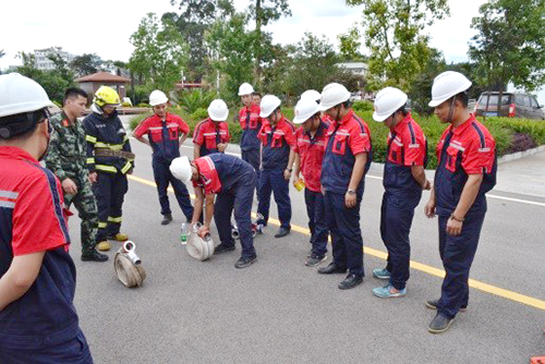 6月29日下昼15:00,昆明盛行生产基地团结安定市消防大队官兵开展了一场消防演习。演习之前,生产基地安环管理部主任陈万行就本次演习拟制了消防预案,并组织生产基地员工举行深入的学习和相识,确保了各项演习事情分工明确、责任到人。